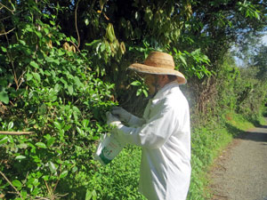八十八夜から二日遅れで茶摘み。 「夏も近づく八十八夜 野にも山にも若葉が茂る あれに見えるは 茶摘ぢやないか 茜だすきに菅の笠」の通りの恰好でと主張したのですが、 家人は「袖もないのになんで襷がいるのよ、馬鹿ね」のひとこと。 無粋な麦わら帽子姿で臨みました。 周りには野生化して放置された茶の木がいっぱいあって誰も見向きもしません。 一芯二葉摘みでまずは少量で実験。 蒸して水分飛ばしながら揉んで揉んで、400g強の茶葉は100gにも届きませんでした。 出来上がった茶葉で午後のティータイム。しっかりお茶の味出て立派な新茶です。